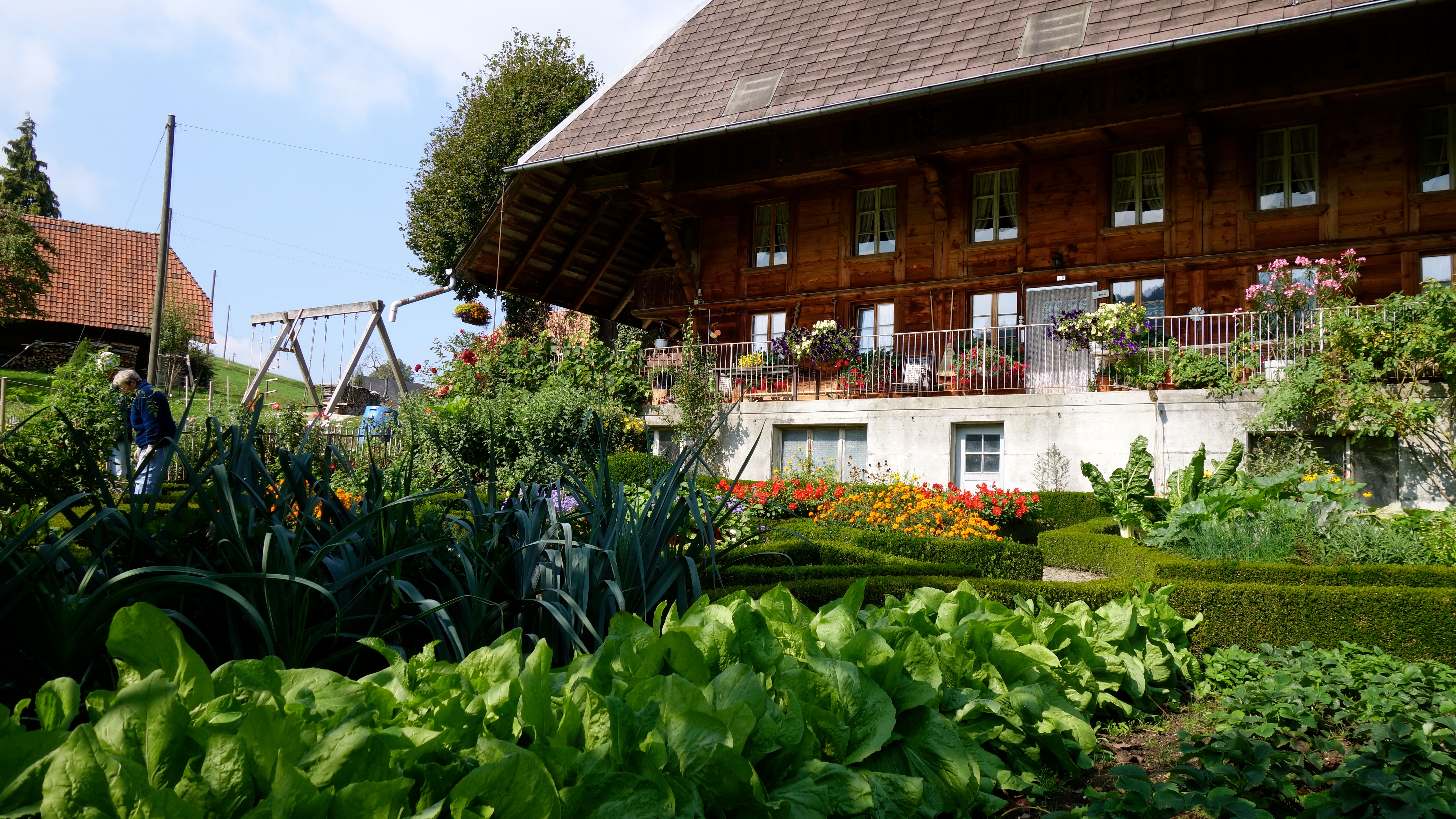 Das nannte man den „Köchplätz“ oder die „Pflanzung“. Hier säte und pflanzte man alles, was eine Grossfamilie brauchte. Bohnen, Kohl, Wirsing, Kürbis, Lauch, Sellerie, Karotten, Kopfsalat, Rapunzel, Schnittmangold, Rüben, Tomaten, Blumen- und Rosenkohl, Spinat, Brokkoli, Radieschen, Lattich, Rettich und rote Beete.