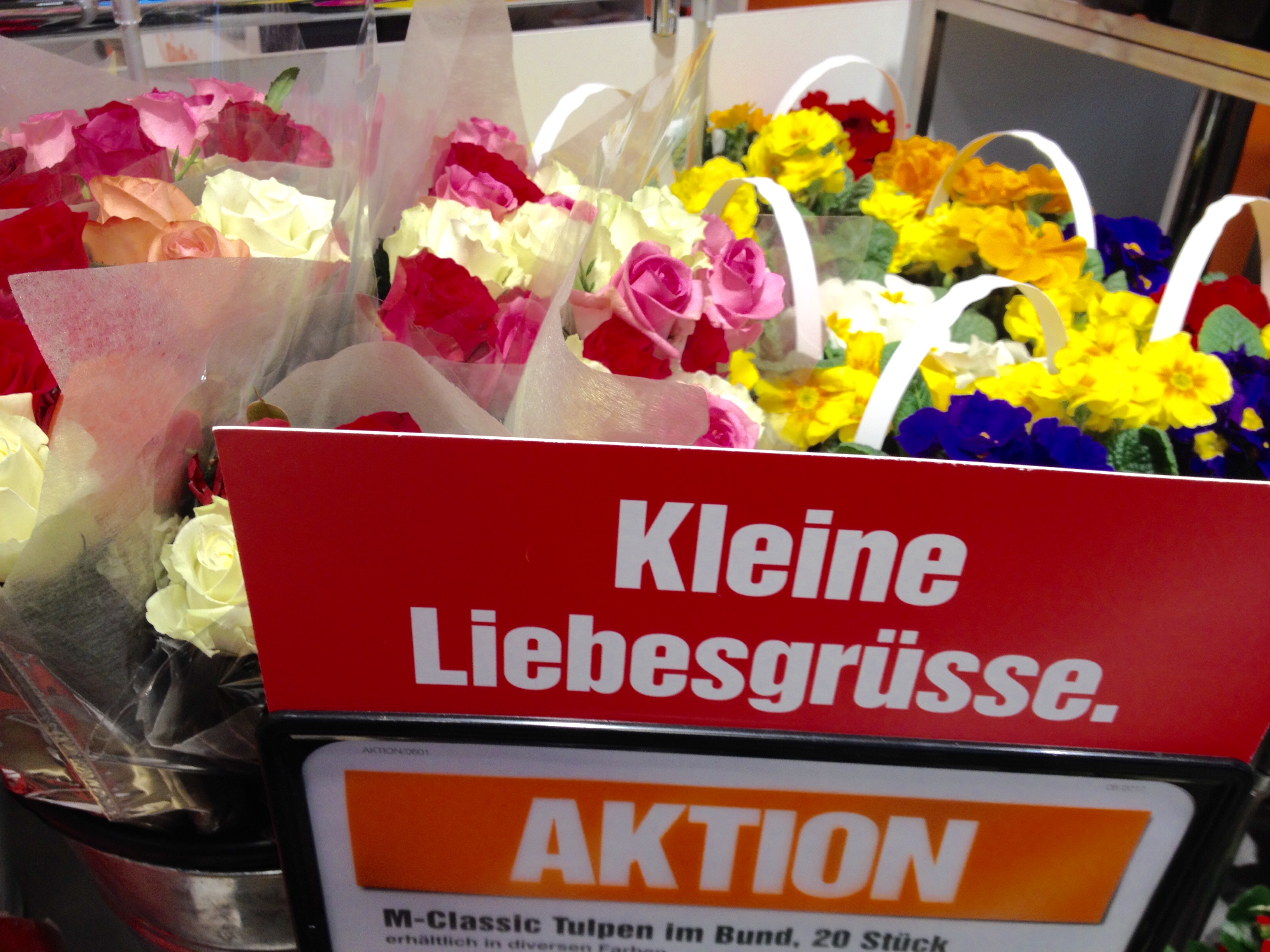 Stolz zeigt man den Blumenstrauss, den man gerade bekommen hat. Blumen, die bestimmt an diesem Tag ein Drittel mehr gekostet haben als eine Woche vorher.